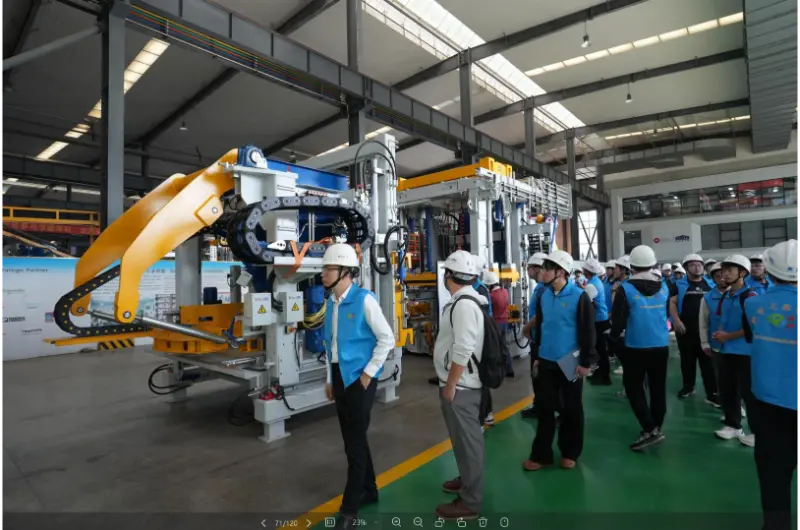 Nel laboratorio di produzione delle apparecchiature, i visitatori hanno visitato il laboratorio, il laboratorio di assemblaggio e il laboratorio di debug, imparando l'intero processo, dall'analisi delle materie prime ai set completi di apparecchiature automatizzate per la produzione di blocchi. Nell'area campione sono state esposte varie specifiche e applicazioni di prodotti fabbricati utilizzando i macchinari per la produzione di mattoni dell'azienda, tra cui mattoni per pareti interne ed esterne, mattoni per pavimentazione esterna e cordoli in pietra, materiali per la tutela dell'acqua e il controllo delle inondazioni, protezione ecologica dei pendii e muri di sostegno a gravità. Nella sala conferenze è stato proiettato un video promozionale dell'azienda.