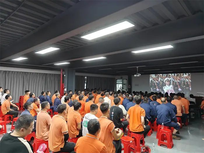 Il 3 settembre è stato un giorno di grande significato per l'intero popolo cinese. In questo giorno speciale, il presidente della Fujian Quangong Machinery Co., Ltd, Fu Binghuang, e il direttore generale Fu Xinyuan, hanno guidato tutti i dipendenti nella sala conferenze dell'azienda per assistere alla grande parata militare e testimoniare questo emozionante momento storico.